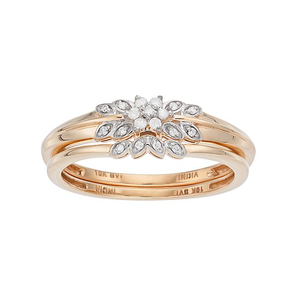 10k Gold 1 10 Carat T W Diamond Flower Engagement Ring Set